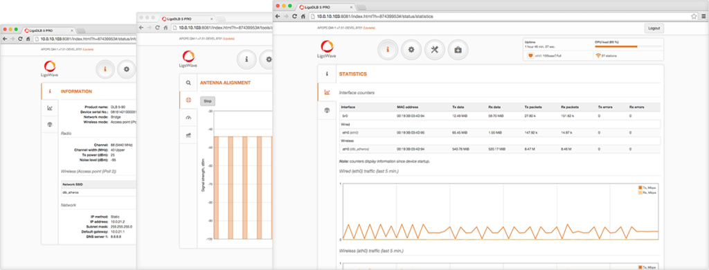LigoWave OS contains all of the essential features for establishing fast, strong, and reliable PTMP networks. The LigoWave OS includes IPv6 Bridge & Router Support, SSDP & Bonjour Device Discovery Options, Flexible Traffic Shaping, DHCP Option 82, and more. The user interface is built on HTML5 with responsive design.